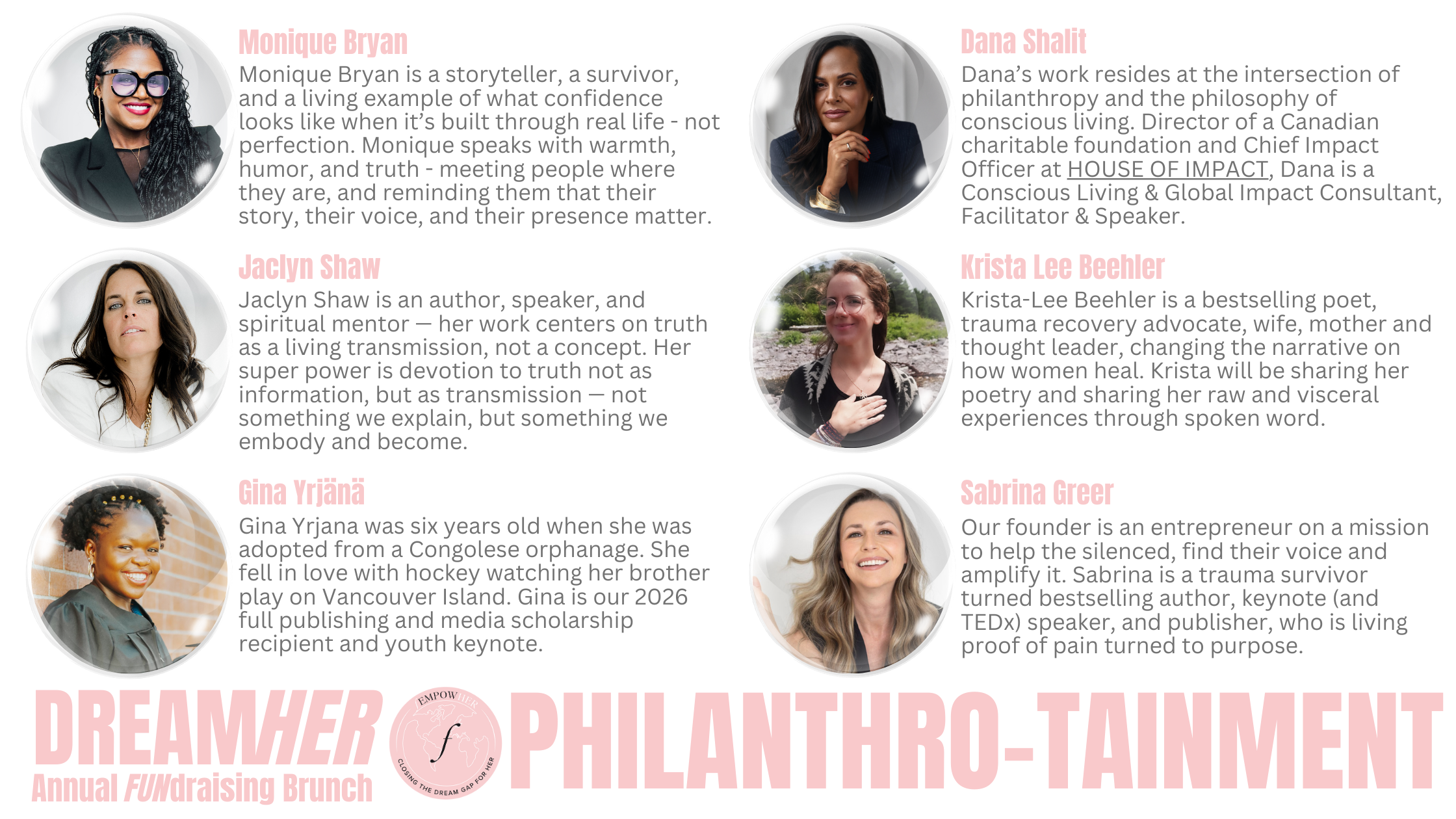 fEMPOWHER Global is a registered charity dedicated to closing the dream gap for girls, female identifying youth, and young women by providing them with the resources, education, mentorship, and platforms to publish their stories and step onto stages.